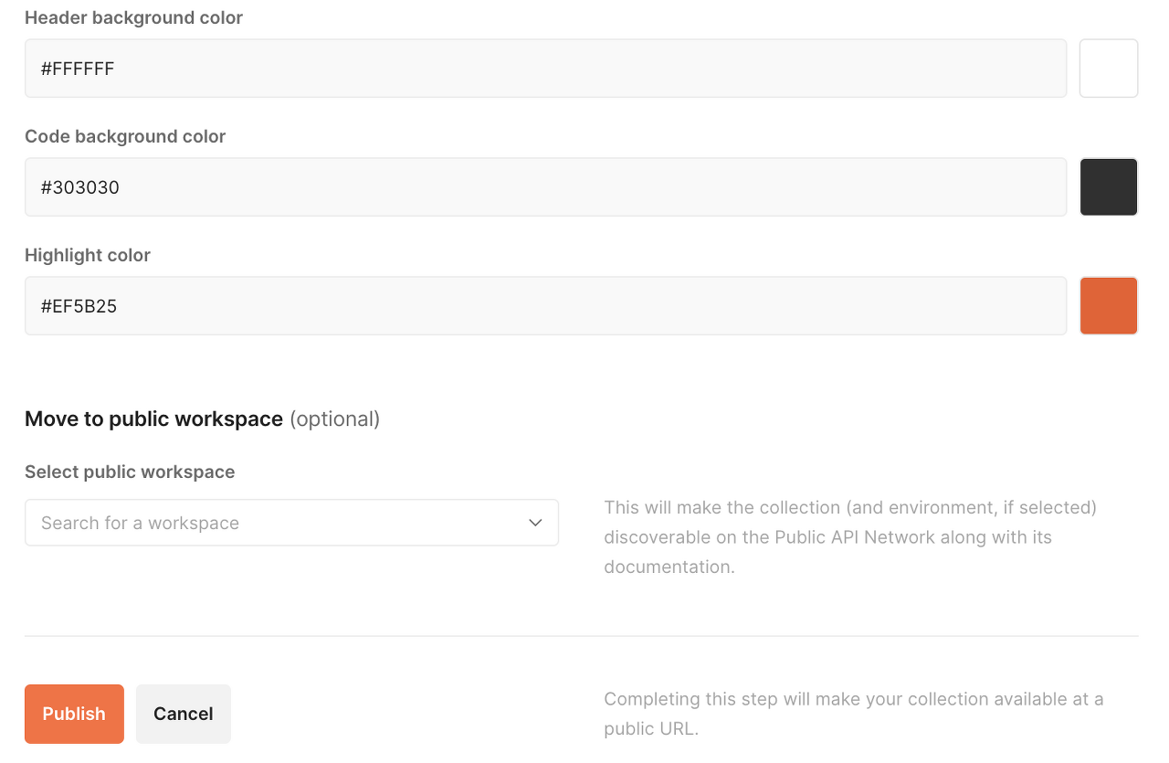생성된 문서를 보면 사진과 같이 우측 상단에 Publish라는 버튼이 있다. 해당 버튼을 누르면 API 명세서를 외부로 공개하기 위한 설정을 진행할 수 있다.