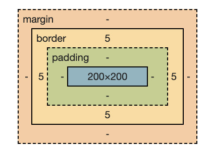 초기 정의한 너비와 높이 200x200에 상하좌우 패딩이 5px씩 추가된 것을 확인할 수 있다.