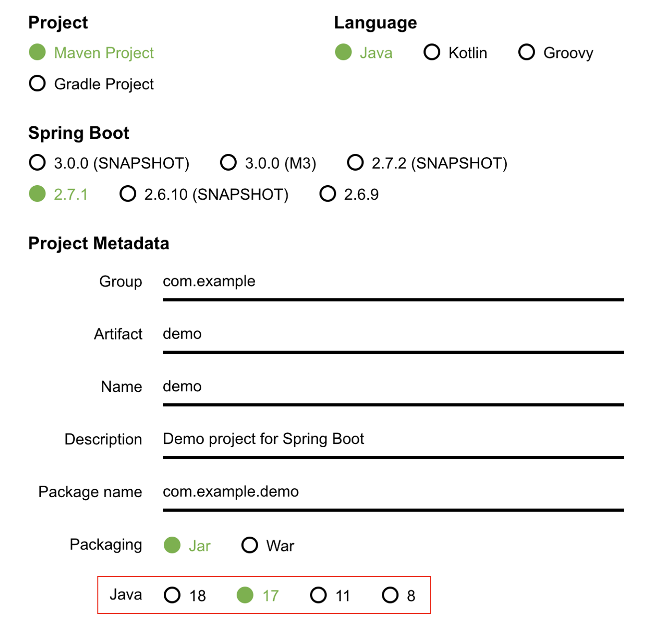 오류가 발생한 원인은 Spring Initializer를 이용하여 환경 설정을 세팅할 때 기본 자바 버전이 17으로 설정 되기 때문이다.