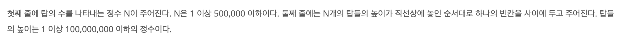 - st 변수는 (인덱스, 탑의 높이) 형식의 데이터로 구성, 예) [(0,6), (1,9)]