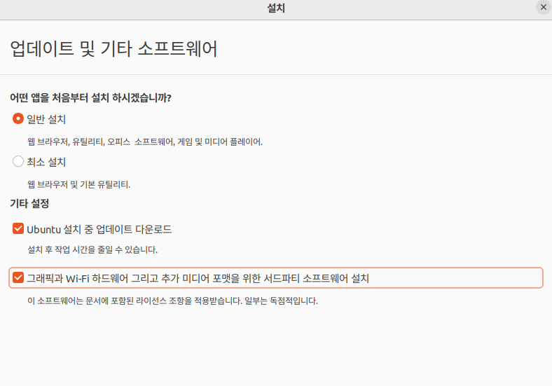 우분투 설치를 진행하다보면 위 사진과 같이 체크박스만 보이고 아래에 다음 페이지로 이동하기 위한 버튼이 보이지 않는 경우가 종종 발생한다.