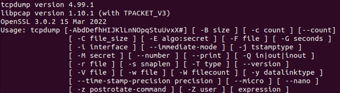 $ tcpdump --help