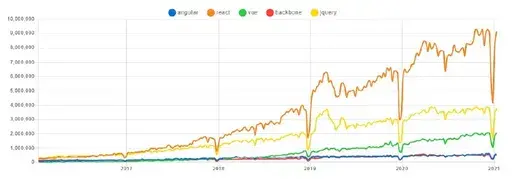 위 차트로 알 수 있듯이 많은 사람들이 React를 이용하여 프론트엔드 개발을 한다.