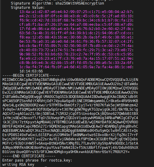 openssl x509 -req -days 365 -extensions v3_ca -set_serial 1 -in rootca.csr -signkey rootca.key -out rootca.crt -extfile rootca.conf