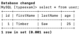 typeexam 이라는 데이터베이스를 사용하기 위해서는 해당 데이터베이스가 미리 존재해야 한다.