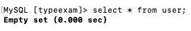 그리고 데이터베이스를 통해서 살펴보면 조회를 했을 때 빈 테이블이 나타나는 것을 확인할 수 있다.