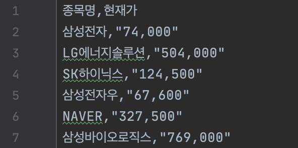 df = pd.DataFrame(dataset, columns=["종목명","현재가"])