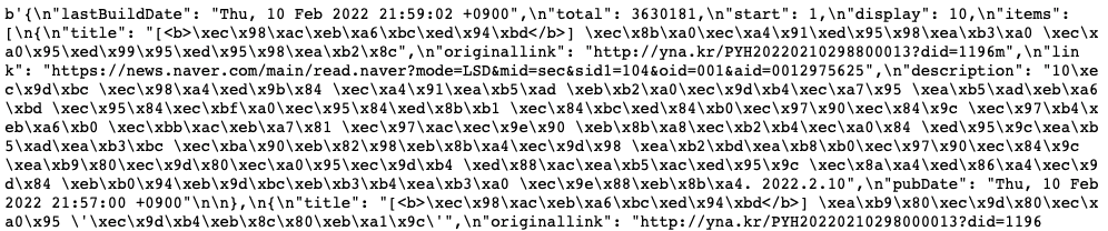 res = requests.get("https://openapi.naver.com/v1/search/news.json?query=올림픽", headers=header_info)