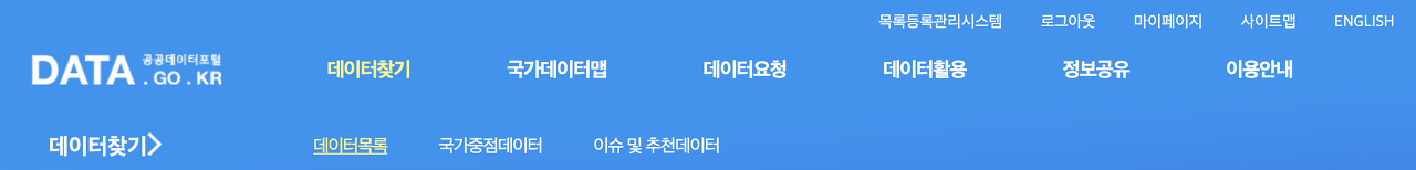 로그인이 완료되었다면 메인 페이지의 상단 탭에 있는 데이터 찾기 메뉴에서 데이터 목록 탭을 클릭한다.