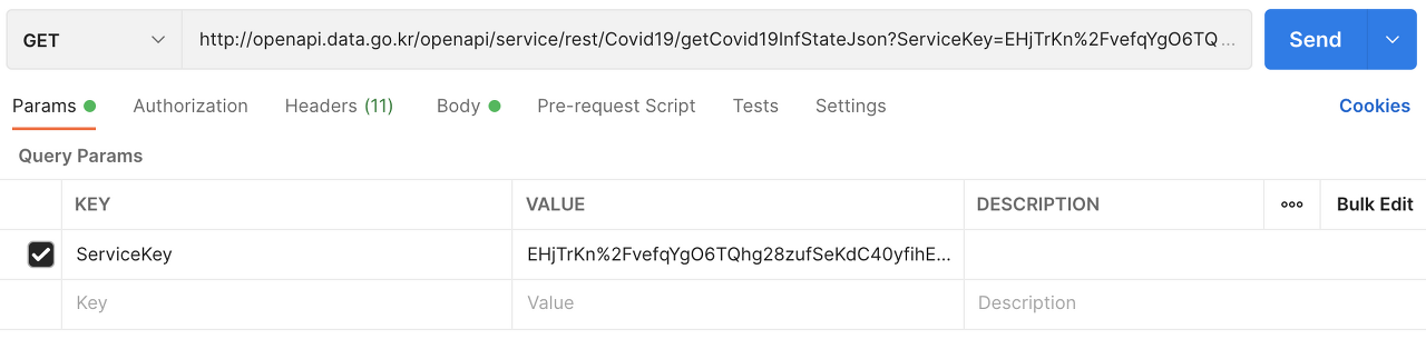 http://openapi.data.go.kr/openapi/service/rest/Covid19/getCovid19InfStateJson?ServiceKey=