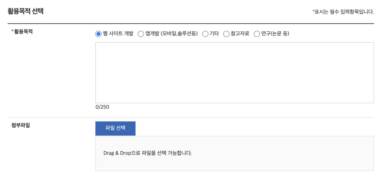 OpenAPI 사용을 위해서는 해당 API 활용 목적을 명시해야 한다.