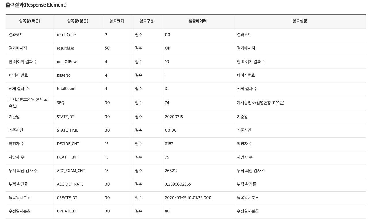위에 보이는 http://openapi...주소에 요청하여 데이터를 가져올 수 있으며 아래에서 예시로 다룰 것이다.