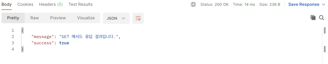 코드를 이와 같이 변경한 뒤 포스트맨을 이용하여 GET 요청을 보내보면?
