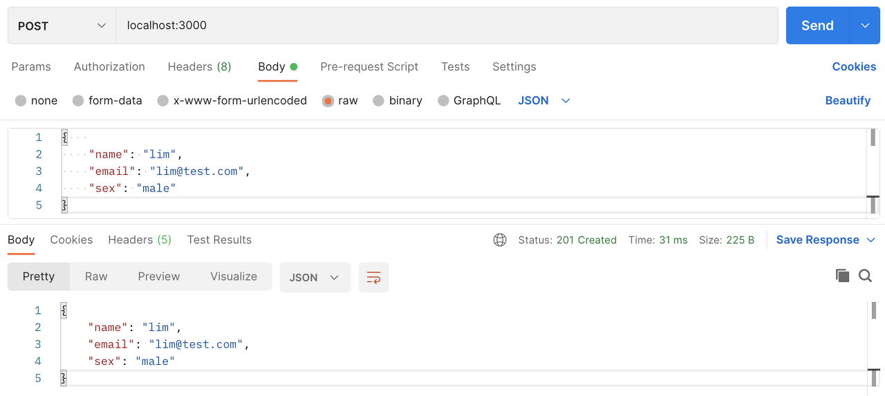 먼저 POST method 코드를 다음과 같이 구현했다.