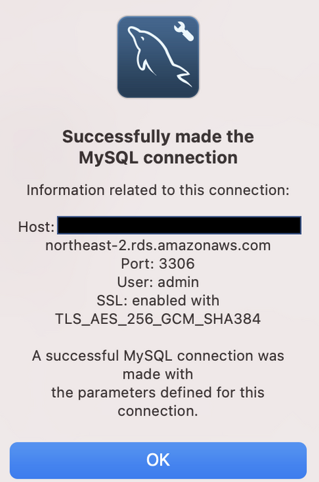 이제 OK 버튼을 눌러 사용자가 생성한 RDS에 접속할 수 있다.