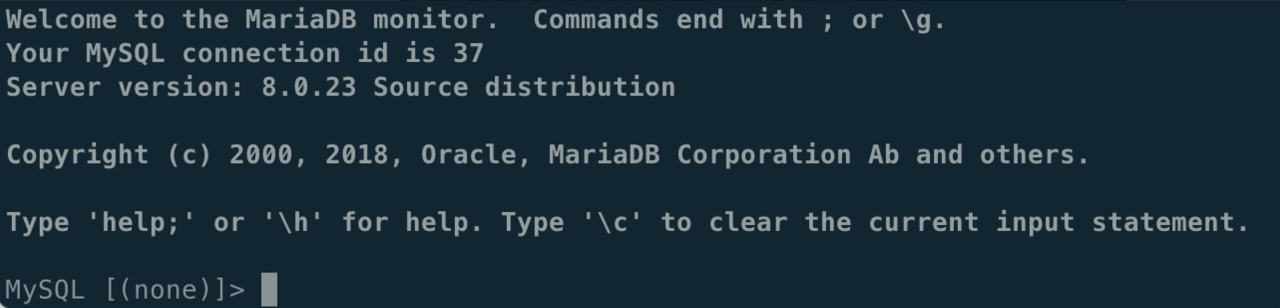 터미널을 통해 위 명령어를 알맞게 입력하면 데이터베이스 연결을 위한 암호를 요구한다. 이 때 암호는 RDS 생성 시 정의한 마스터 암호를 입력하면 된다. 연결 결과는 다음과 같다.
