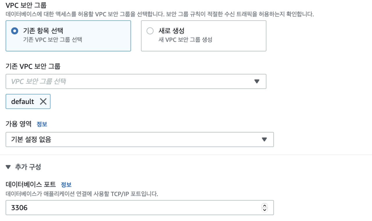 외부에서 데이터베이스에 접근하기 위해서는 인바운드 규칙을 수정해야 한다.