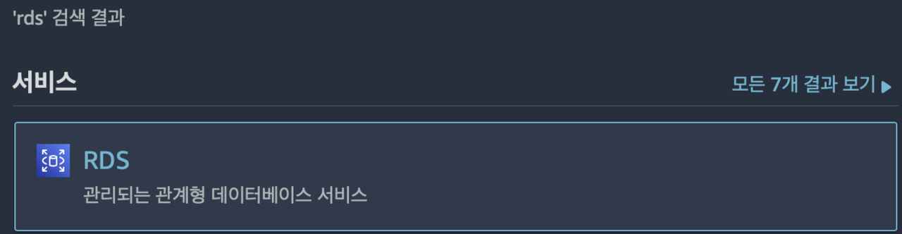 AWS 관리 콘솔에서 RDS를 입력 후 RDS 콘솔로 이동한다.