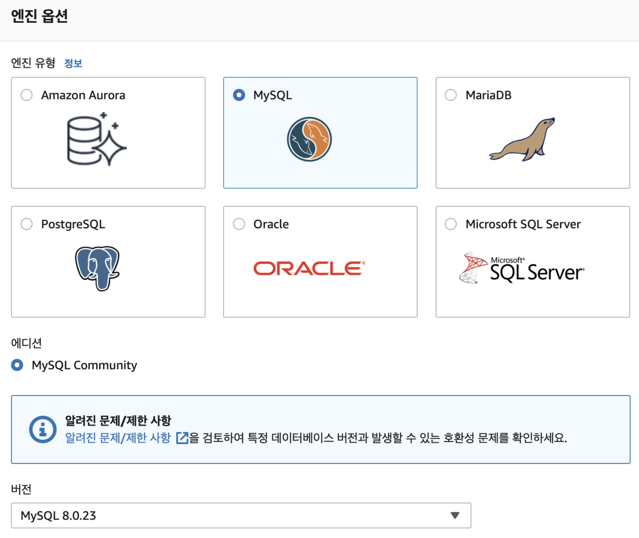 Amazon Aurora, PostgreSQL, MySQL, MariaDB, Oracle Database 및 SQL Server를 비롯한 6개의 데이터베이스 엔진을 제공하며 사용자는 본인이 원하는 데이터베이스 엔진을 선택하여 사용할 수 있다.