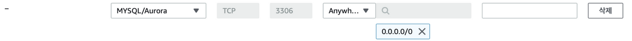 0.0.0.0/0 주소는 외부의 모든 IP주소에서 데이터베이스에 접근하도록 해준다.