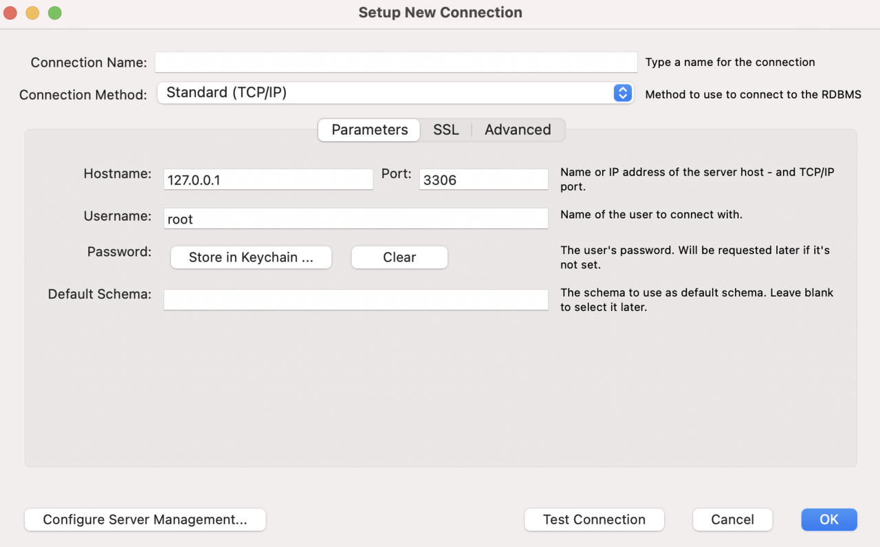 - Connection Method : 연결 방식을 선택하는 부분으로 TCP/IP를 선택한다.