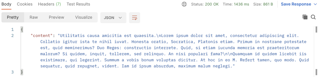 또한 포스트맨에서 확인해보면 아래와 같은 결과를 얻을 수 있다.