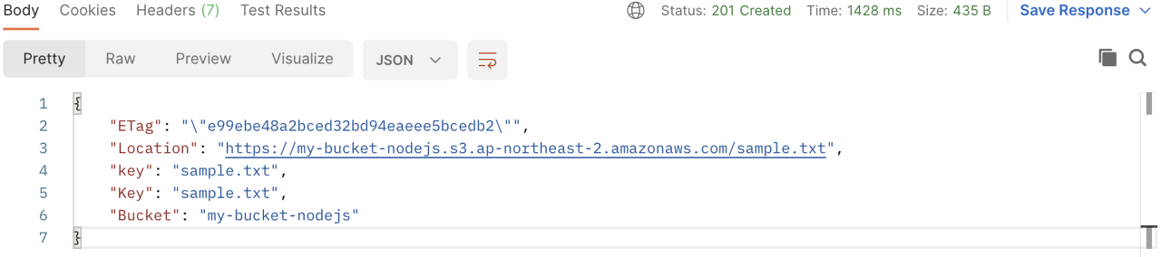 이번 예제에서는 단순히 파일 저장을 위해서 GET 요청으로 간단하게 구현해 보았지만 실제로 서비스를 구현할 때에는 POST 요청을 통해서 body에 직접 저장 시 object 이름, 업로드 할 파일명 등을 요청하여 서비스를 구현해야 훨씬 완성도 있는 서비스를 구현할 수 있을 것이다.