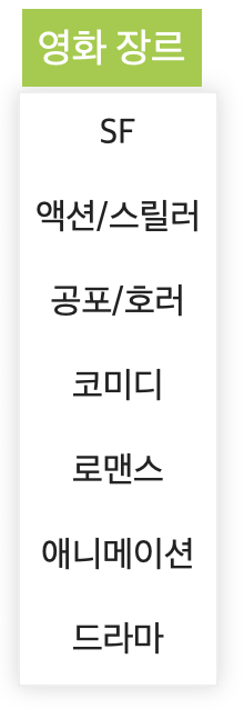 코드를 실행 후 영화 장르 탭에 마우스를 갖다 대면 위 사진처럼 아래로 드롭다운 메뉴가 활성화 되는 것을 확인할 수 있다.