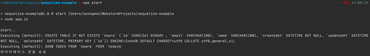 터미널 콘솔에서 sequelize db:create 입력하기