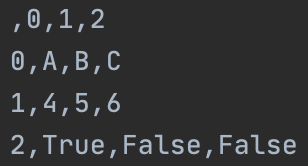 - 세번째 인자 : 인덱스의 출력 여부를 정의한다. False일 경우 인덱스를 출력하지 않는다.