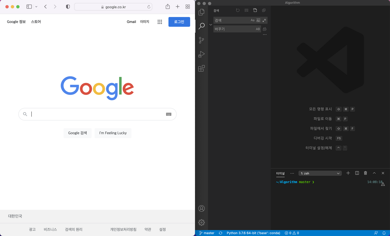 이런 식으로 코딩을 할 때 구글링이 필요하면 파티션을 분할하여 유용하게 사용중이다. 😄