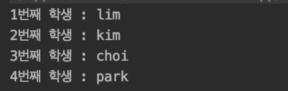 println("${index+1}번째 학생 : ${name}")