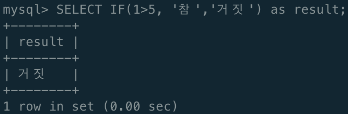 - ELSE 다음에는 조건이 거짓일 경우에 실행될 명령어가 들어간다.